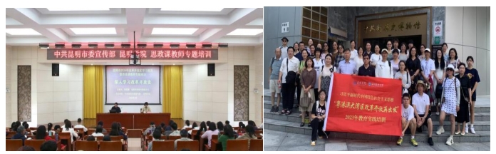 坚持深化校地、校校合作,推动大中小学思想政治教育一体化建设。2023年以来,先后与中共昆明市委宣传部、中共昆明市委党史研究室、昆明市教育体育局共同举办“昆明市大中小学思政课一体化建设研讨会”“学习贯彻习近平总书记在学校思想政治理论课教师座谈会上的重要讲话精神”五周年座谈会,弘扬“聂耳精神赓续红色血脉 大思政课”建设研讨会暨“聂耳精神”融入思想政治理论课教学集体备课会。2023年11月,马克思主义学院对昆明市中小学200名思政课骨干教师进行培训,积极服务地方教育改革发展建设。