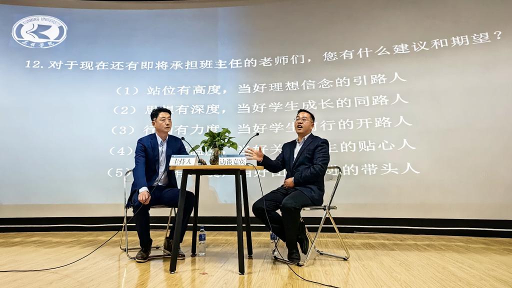 访谈过程中,刘兴全就学生工作认知、工作思路和具体方法、学生工作重难点、日常思政教育方法、心理健康教育、学风建设、服务学生等多个方面与主持人进行了交流分享,对best365辅导员和班主任们提出了工作意见和建议。参训老师就辅导员、班主任工作定位、具体工作案例等内容与刘兴全老师进行了热烈讨论。