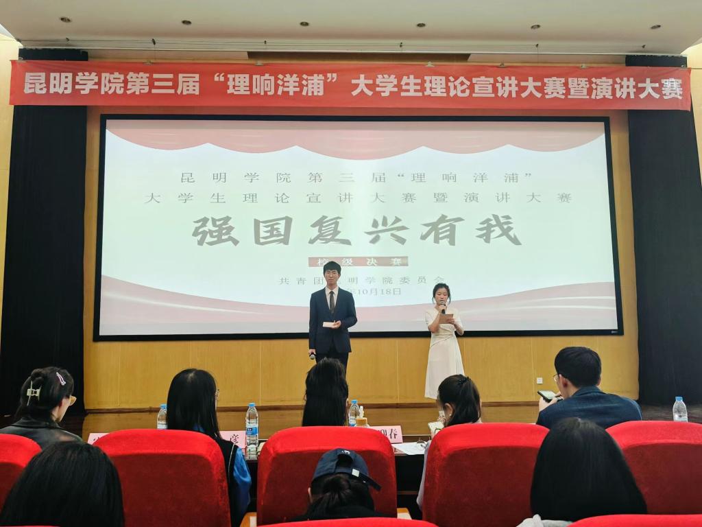 校团委副书记荣杨,人文学院教师、云南省普通话测试员、昆明市语言文字专家库成员张迎春,马克思主义学院副教授、云岭青年宣讲团、云岭百姓宣讲团、昆明市委宣讲团成员缪文武以及往届理论宣讲比赛一等奖获得者冯文庆、季晶莹担任大赛评委,全校200多名学生代表观看比赛。
