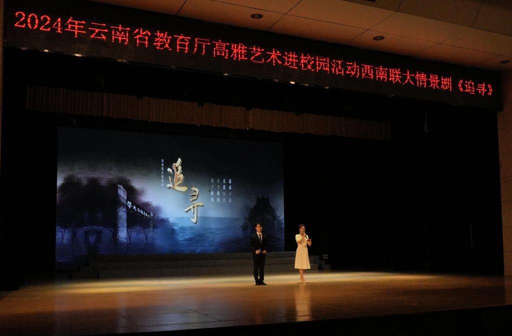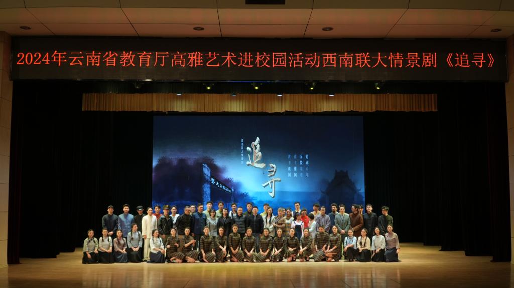 为进一步加强学校美育工作,强化美育育人功能,落实云南省教育厅关于开展2024年“高雅艺术进校园”活动的通知要求,11月19日,西南联大情景剧《追寻》在best365学生会堂成功举办。此次活动由云南省教育厅主办,云南师范大学、best365足球官网承办。云南师范大学传媒学院相关负责人,学校宣传部、学工部、团委等部门负责人及二级学院党委副书记、师生代表参加本次观演活动,观演人数达到1300人次。