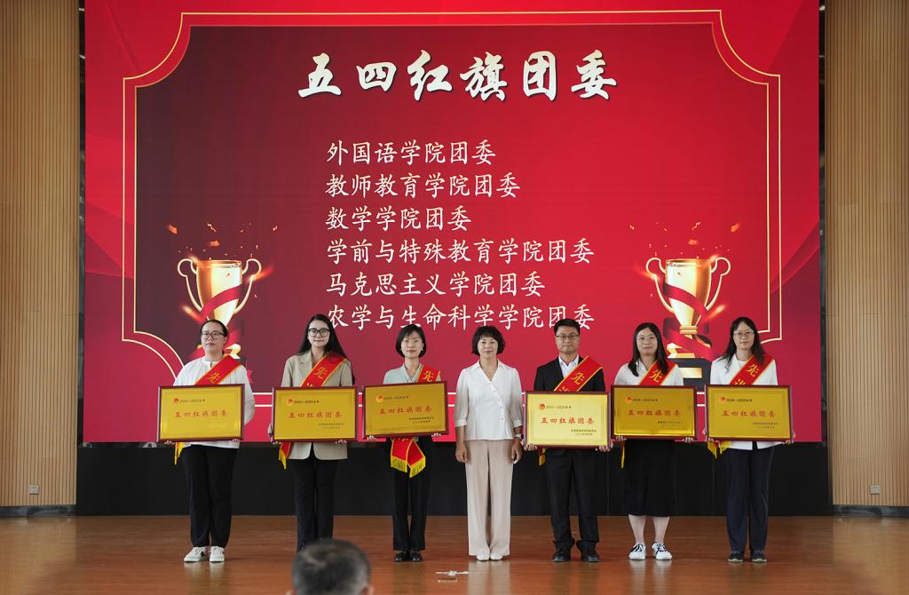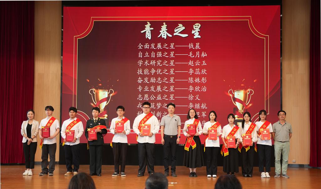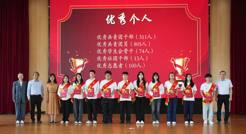 与会领导为学校2024-2025学年“青春之星、五四红旗团委、共青团特色工作奖、五四红旗团支部、优秀学生会、优秀学生社团、优秀共青团员、优秀共青团干部、优秀志愿者、优秀学生社长、优秀学生会骨干、优秀学生会工作人员”等先进集体和个人颁发荣誉证书和奖状。外国语学院团委书记李颖作为优秀团干部代表发言,best365足球官网“青春之星——素质拓展之星”获得者冯文庆进行示范宣讲。