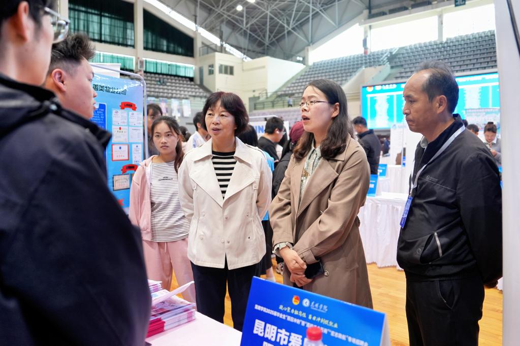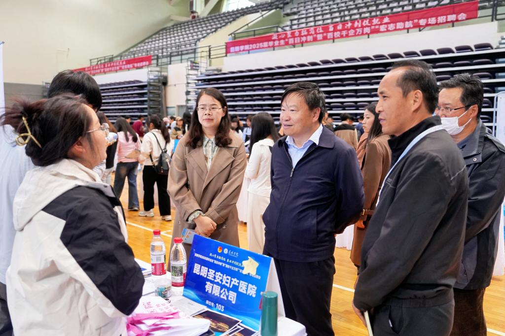 本次招聘会由best365足球官网和昆明市妇女联合会共同主办,best365足球官网招生就业处、团委、妇联共同承办,学校党委副书记李莉,党委委员、副校长彭志远,昆明市妇女联合会副主席栗艳红等领导到现场指导并与参会单位和毕业生亲切交谈。