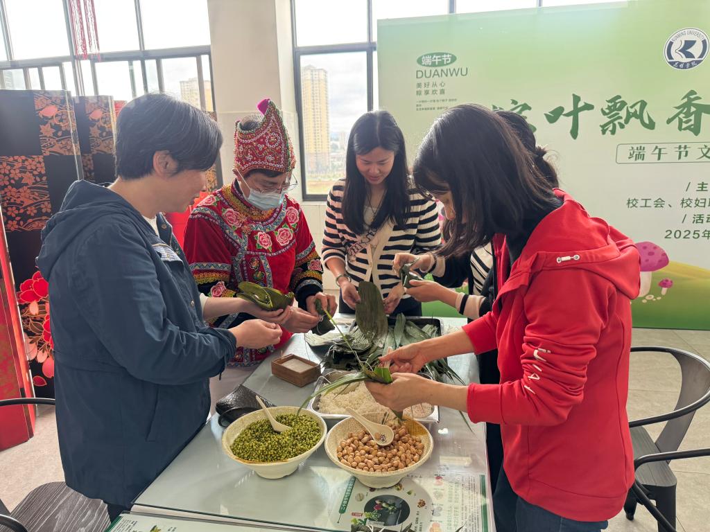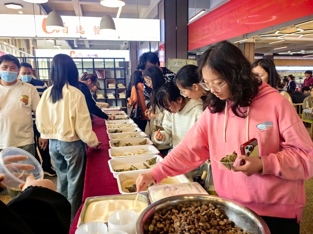 “科学护肤,爱心义诊进校园”健康讲座邀请临床医学专家为同学们讲解皮肤护理知识并进行现场义诊。资深中医医师受邀为辅导员们举办了一场“传播中医养生知识,营造健康生活方式”的健康讲座并现场进行义诊,帮助老师们了解中医养生的精髓,学会如何在忙碌的工作与生活中保持身心健康。“粽情飞镖·安康端午”飞镖体验活动将飞镖竞技与传统习俗相结合,弘扬中华文化,增强师生的团队合作精神。“粽叶飘香·暖心端午”端午节云南民俗体验活动在南北苑食堂开展。在文化体验区,师生们品尝了粽子、芽豆、咸鸭蛋、煮大蒜等传统节日美食,并通过图文展板深入了解了民俗文化。在包粽子体验区,4位民俗文化传承人现场指导,师生们学习并掌握了包粽子的技巧和方法,亲手制作出一串串形态各异的粽子,体验了传统手工艺的乐趣。