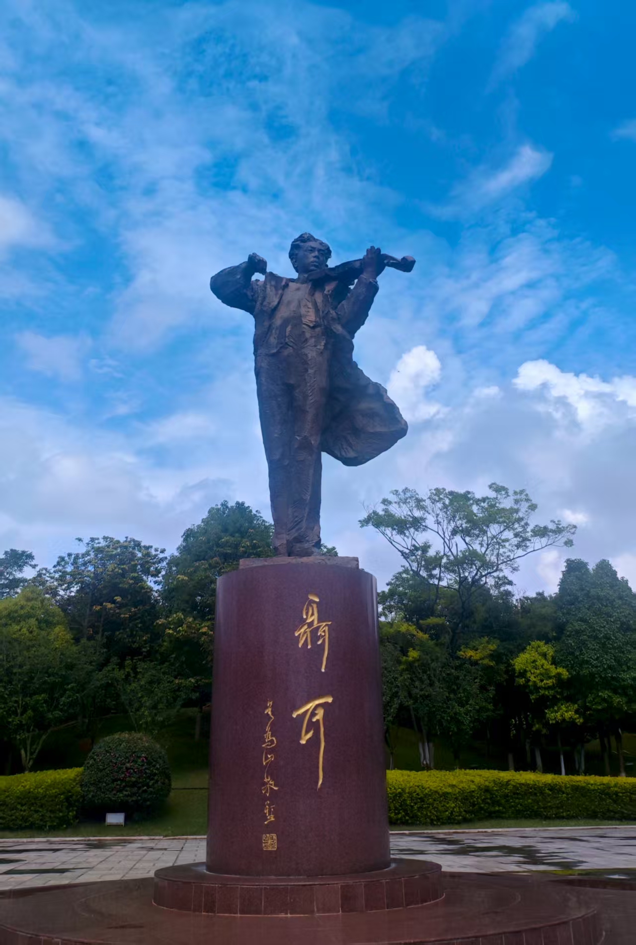 队伍回到best365足球官网,肃立于校园内的聂耳塑像前。塑像凝望着莘莘学子,无声传递着“为时代呐喊、为人民发声”的使命。全体师生唱响《义勇军进行曲》,歌声激昂,承诺将聂耳对祖国和人民的无限忠诚内化于心、外化于行。这一刻,“聂耳精神”从抽象概念化为具象传承,深深烙印在每一位参与者心中。