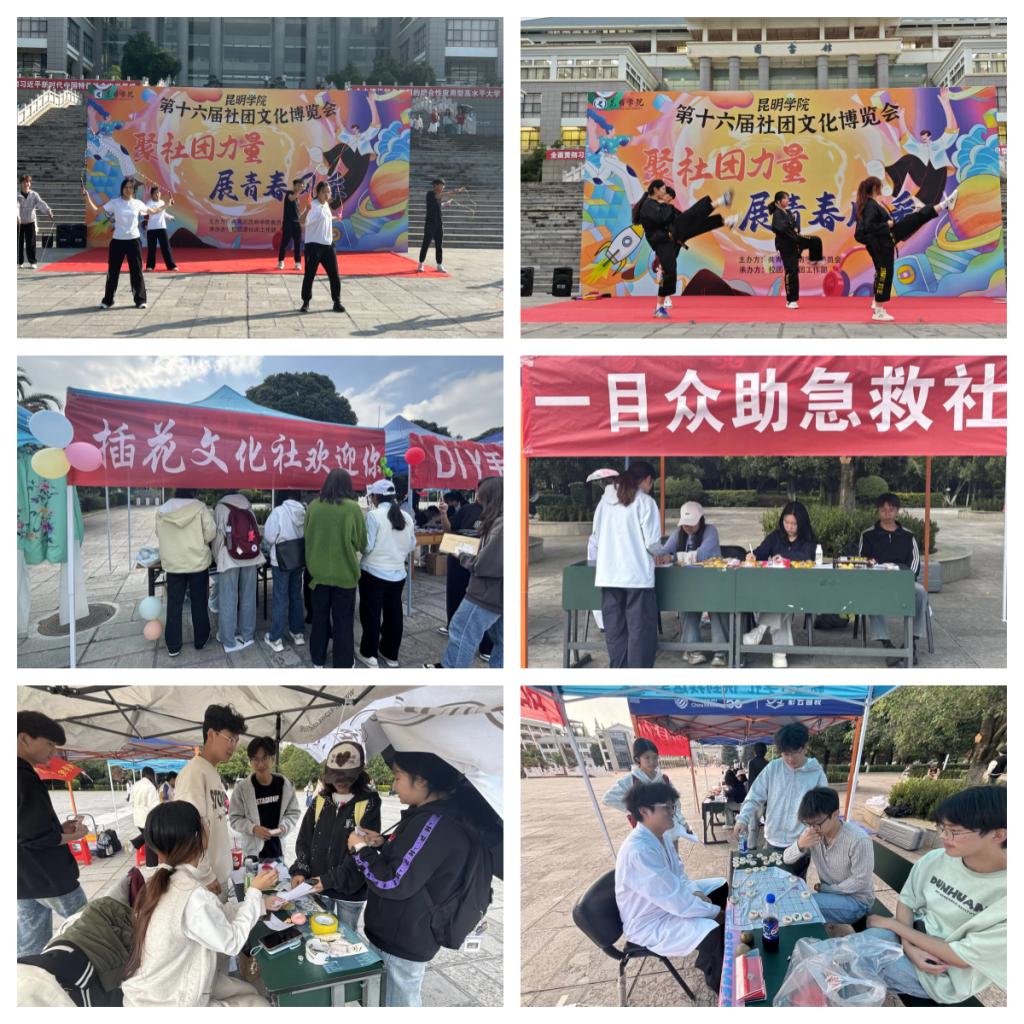 本次博览会开幕式采用快闪表演形式,各社团轮番登场尽显风采。随着动感音乐响起,BAG 街舞社成员率先登场,高难度旋转、活力律动瞬间点燃现场氛围,利落舞姿引得观众阵阵欢呼;体育舞蹈协会的同学们身着优雅舞裙与笔挺礼服,探戈的激情、华尔兹的浪漫在舞步间流转,展现出体育与艺术融合的独特魅力;粉墨春秋戏曲社的成员们身着绚丽戏服,一段经典京剧选段的唱腔字正腔圆,水袖翻飞间尽显传统戏曲的典雅韵味……各类节目精彩纷呈、让人目不暇接,展现出昆院学子的青春朝气与社团文化多元的魅力。