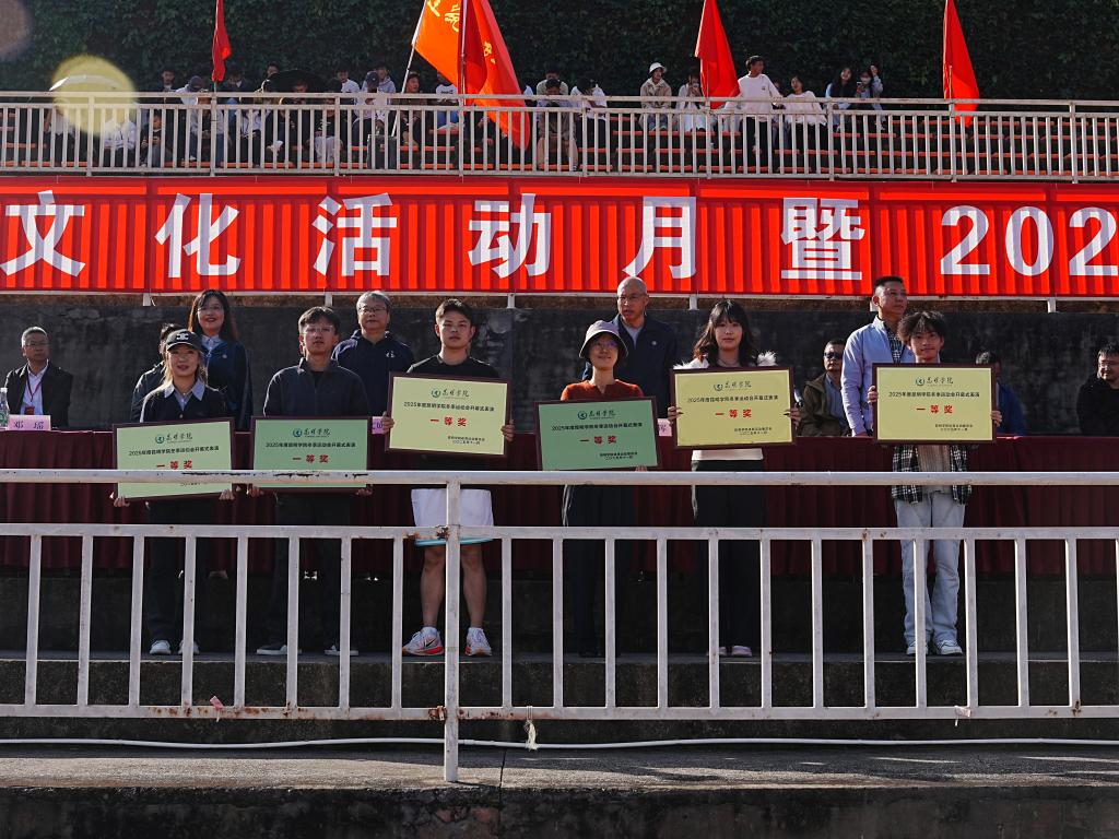经过为期三天的激烈角逐,本届运动会圆满落下帷幕。2900余名师生联袂呈现的开幕式展演气势恢宏、精彩纷呈;来自19个学院的4500余名运动员,在9个大项、55个小项的角逐中奋勇拼搏,共诞生38个单项冠军、17个团体奖项,打破校记录6项,6个代表队凭借优良作风荣获“体育道德风尚奖”、6个学院在2025年度《国家学生体质健康标准》测试工作中荣获“先进单位”。11月15日,闭幕式在田径运动场举行。学校党委副书记王文成主持闭幕式,校领导罗荣辉、邓瑶、夏体渊出席。与会校领导为获奖单位颁奖。