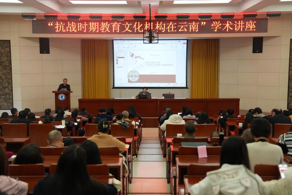 11月12日,展览启动式举行,学校党委副书记王文成主持,学校各单位分管档案工作领导、兼职档案员,各二级学院党委副书记、团委书记、学生代表及档案馆全体工作人员共计190余人参加。全国档案专家、云南省档案馆史料编研处研究馆员、一级调研员李涛为参会人员作了“抗战时期教育文化机构在云南”为主题的专题讲座,以翔实的档案史料为切入点,带领师生一同回溯抗日战争时期云南高等教育的峥嵘岁月,在烽火硝烟中坚守育人初心。