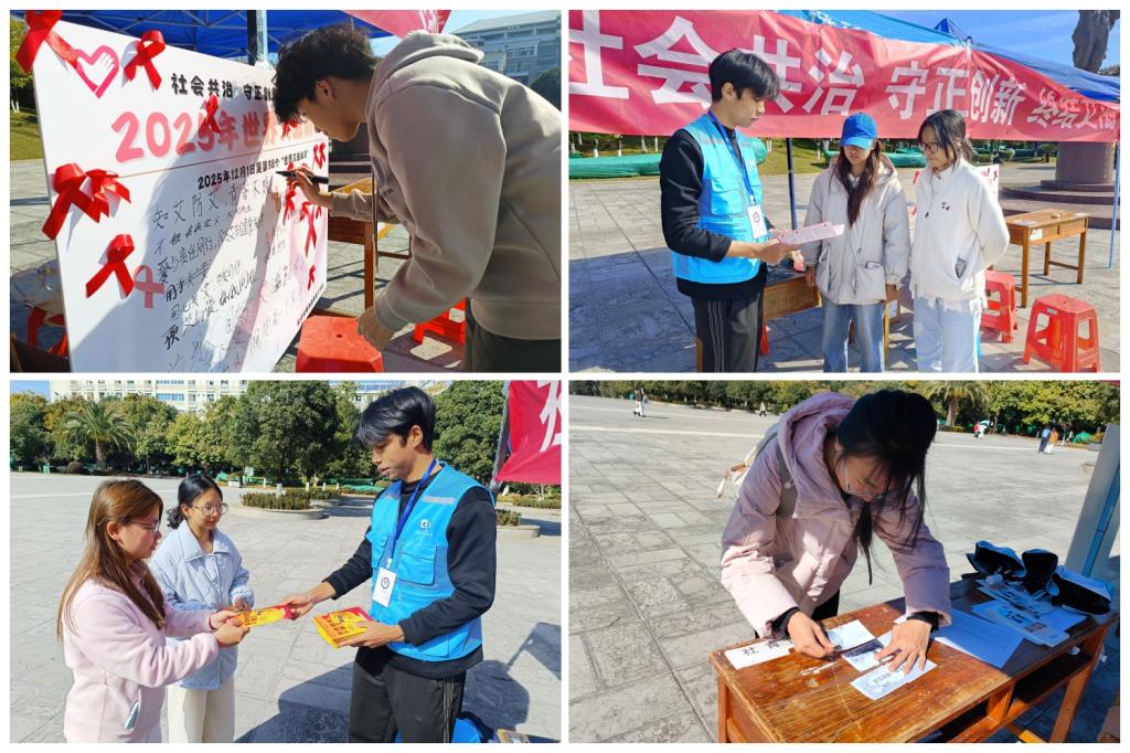 2025年12月1日是第38个“世界艾滋病日”,我国今年宣传活动主题为“社会共治,守正创新,终结艾滋”。当天,由校团委主办、青春红丝带志愿者协会承办的best365足球官网2025年“世界艾滋病日”主题宣传活动在聂耳广场顺利开展。
