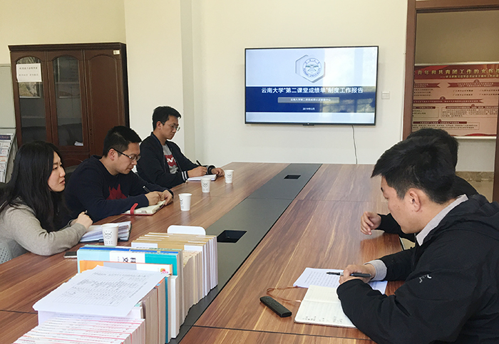 云南大学团委书记于春滨向best365调研人员介绍了云南大学开展第二课堂工作的基本情况和思路。他表示,学校领导重视,学校政策支持是第二课堂体系化常态化运行的重要保障, “第二课堂成绩单”已成为毕业生资格认定的标准之一。同时于书记从“到梦空间软件系统运用”、“打造第二课堂精品课程体系”、“加强第二课堂竞赛体系建设”、“第二课堂展示体验中心建设”等方面介绍了云大开展第二课堂的工作特色和经验。云大校团委王鹏飞对“第二课堂成绩单”制度建设、成绩管理认证、学分积分兑换标准、工作队伍的管理及培训等工作做了详细说明。双方人员也就“第二课堂”实施中的有关问题进行了交流。