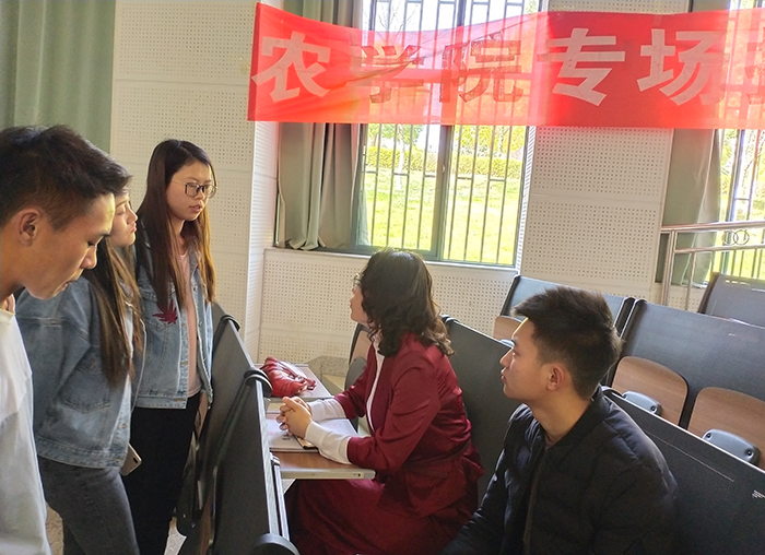 3月18日,农学院在博雅楼3101教室开展专场招聘会。2019届毕业生及辅导员参加,农学院党总支副书记杨丽华到现场指导。
