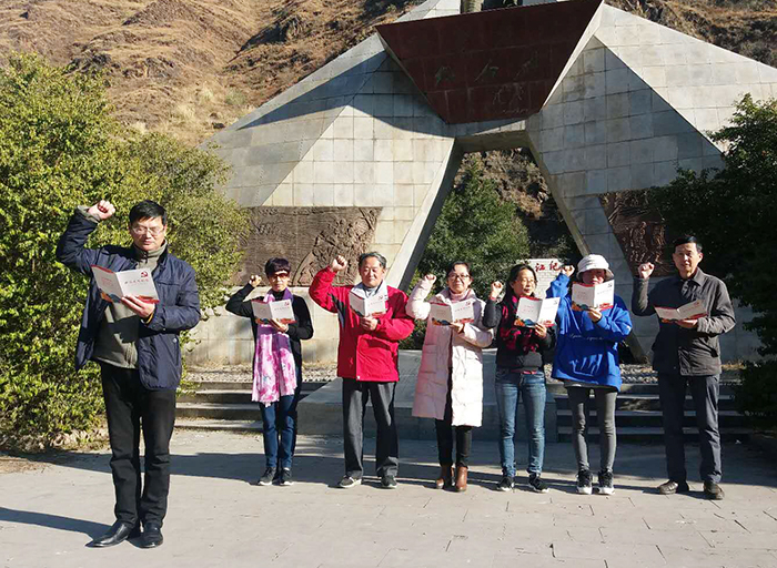 沿着下山公路来到江边,是皎平渡红军长征渡江纪念馆。下午四点半,马院教师抵达金沙江四川与云南交界的皎平渡渡口,教师集体参观了红军渡江纪念馆,党员教师在红军长征渡江纪念馆前重温入党誓词。