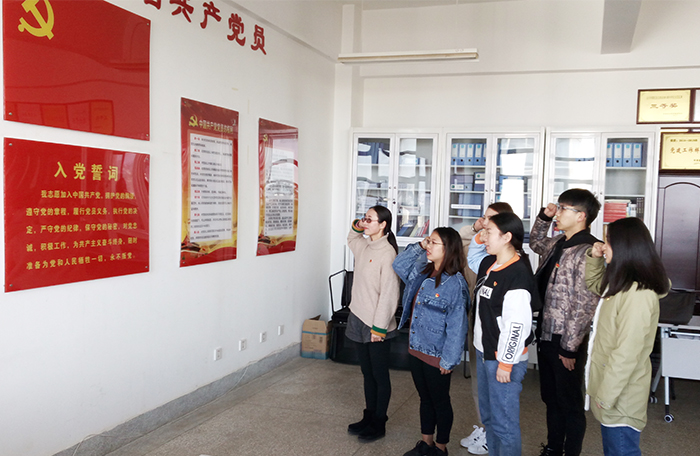 12名新党员分别在学生第一党支部书记和学生第三党支部书记的带领下,面对党旗,紧握右手,庄严进行了入党宣誓。全体老党员也在张培宏副书记带领下重温了入党誓词,增强党性和党员意识的教育。