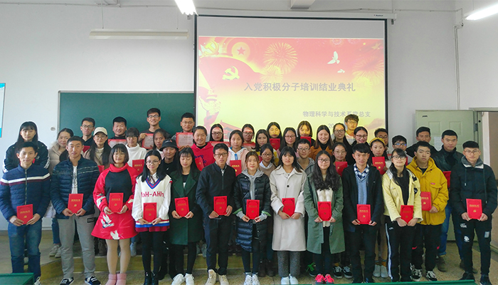 1月4日,物理科学与技术系党总支举办2018年入党积极分子培训班结业仪式,为参加培训的入党积极分子颁发结业证书。