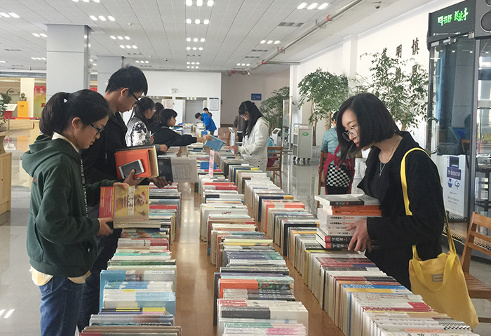 11月27日-28日,图书馆联合新知图书城、市新华书店举办了为期两天的“你选书我买单” 图书推荐活动。在图书馆一楼大厅展出了社科、文艺类图书近万册供读者现场挑选,吸引了大批师生前来选书。