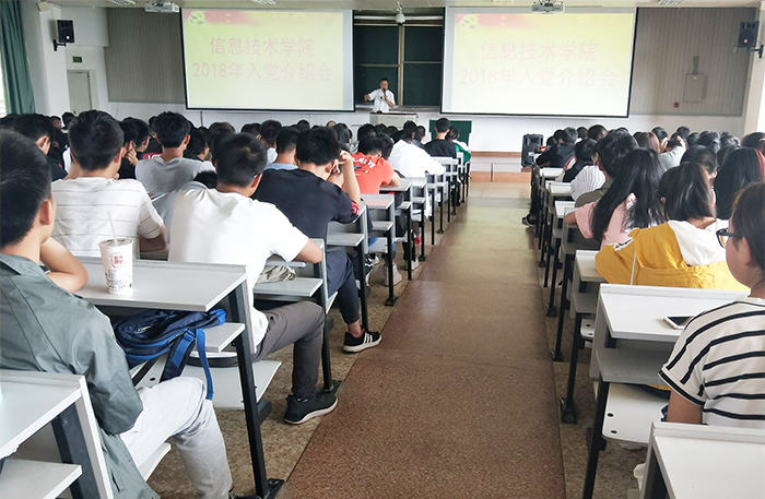 信息技术学院党总支坚持把大学生思想政治工作放在重要位置,每年抓住新生入学教育契机,开展入党启蒙教育。多年来始终秉持早播种、早选苗、早培养的思路,使学院学生党建开好局,起好步,为不断壮大学生党员队伍打下坚实的基础。通过此次活动对2018级全体新生进行了一次主题鲜明的入党启蒙教育,使同学们明确了党员发展的要求和具体流程,提高了同学们对党的认识,帮助同学们端正入党态度,初步树立正确的入党动机。