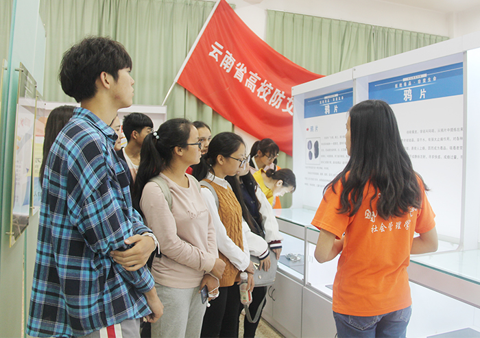 9月10日、11日,为使2018级新生牢固树立“禁毒防艾”意识,增强自身保护能力,社会管理学院在惟真楼4102禁毒展厅组织开展了青年志愿“禁毒防艾”参观、宣讲活动。社会管理学院2018级全体新生进行参观。