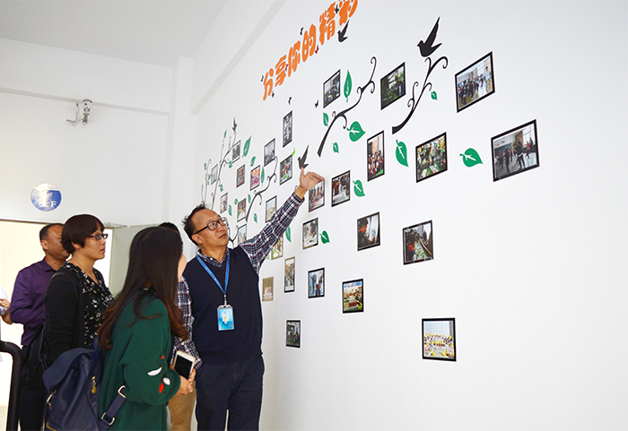 在李晋德校长的陪同下,一行人参观了best365的校园文化建设,对二楼楼梯间和读书吧进行参观指导。李校长指出,经过全校师生的共同努力,校园文化建设越来越成熟,希望通过不断努力创造环境,为全校师生共同营造一个良好的学习生活环境,在孩子们的心灵中塑造美的教育。同行的泸西县旧城镇初级中学李俊校长对best365的校园文化建设给予很高的评价。