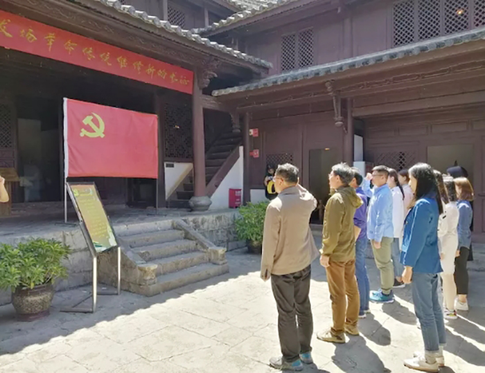 在中央红军首长驻地——何家大院,举行了庄严的重温入党誓词仪式。参加活动的全体党员在贾斌老师的带领,面向鲜红的党旗,右手握拳,庄严宣誓“……为共产主义奋斗终身,随时准备为党和人民牺牲一切……”。之后,到杨家大院会议室观看了专题影像资料,分享了参加活动的感受和心得。大家表示,新中国的今天来之不易,更难以想象的是在我们眼前的这一间间狭小暗阁里,中央领导人审时度势,对强渡金沙江皎平渡做出了具体部署,取得了红军战略转移的决定性胜利,最终带领人民取得了革命的成功,建立了新中国。我们要好好珍惜今天的幸福生活,努力学习,在新时代的新长征中贡献自己的力量和智慧。