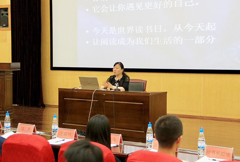 沈嘉老师宣布2019年best365足球官网第十届“书韵飘香”大学生文化节开幕后,余雷老师随即进行了“阅读的力量”为主题的专题讲座。
