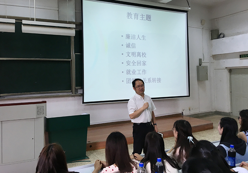 会上,乔永锋副书记对毕业生们圆满完成大学学业表示祝贺,并围绕“廉洁人生”“诚信”“文明离校”“安全回家”等四项内容对毕业生展开离校教育。乔永锋指出,廉洁诚信是社会主义核心价值观的重要组成部分,同时也是中华优秀传统文化的重要组成部分和文化自信的重要来源,希望同学们珍惜个人信用,拥有廉洁诚信的人生。最后乔永锋副书记祝福2019届全体毕业生安安全全地奔赴新的工作岗位,拥有一个前程似锦的明天。