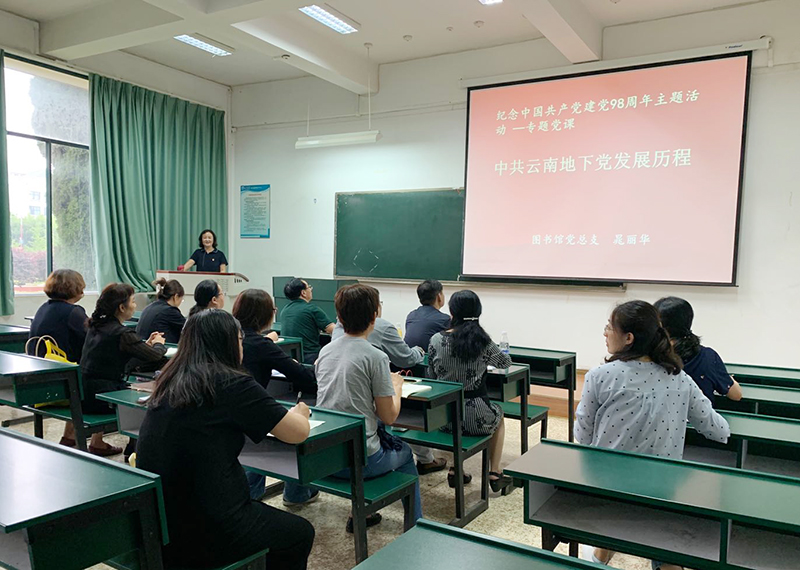 75日下午,在博识楼1104教室,图书馆党总支书记晁丽华为图书馆全体党员作题为“中共云南地下党发展历程”的专题党课。晁丽华书记从建党之初、抗日战争时期、解放战争时期、云南地下党的历史功绩及重要启示四个方面,让大家更清楚地了解了中共云南地下党的成立、发展和取得的历史功绩,云南地下党领导云南人民进行了艰苦卓绝的解放斗争,在斗争进程中显示了出色的政治智慧和创造性的探索成果,为云南和平解放和解放后党的工作顺利展开,边疆民族地区在新政权建政进程中长期保持团结稳定奠定了基础。