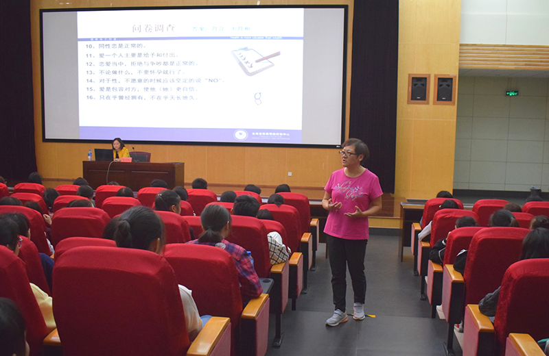 安晓静老师以“知性青春·懂艾而爱”为主题,结合大学生现状和性心理特点,通过生动的语言和真实的案例与现场同学进行互动,教育同学们树立正确的人生观和价值观,养成良好行为习惯,学会保护自己。杨祥萍老师为同学们讲解了HIV尿液检测包的使用方法及注意事项。