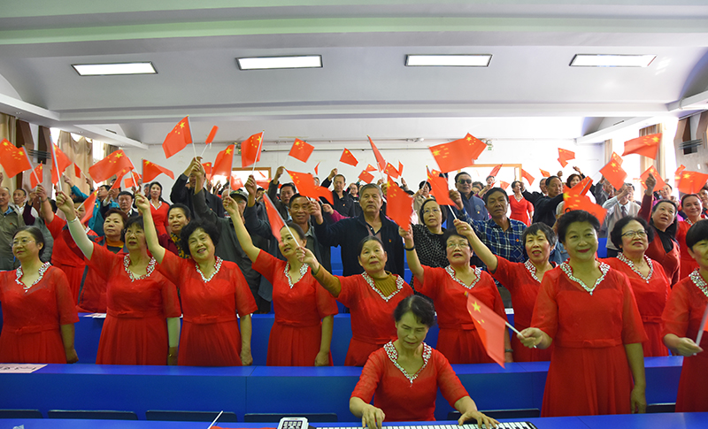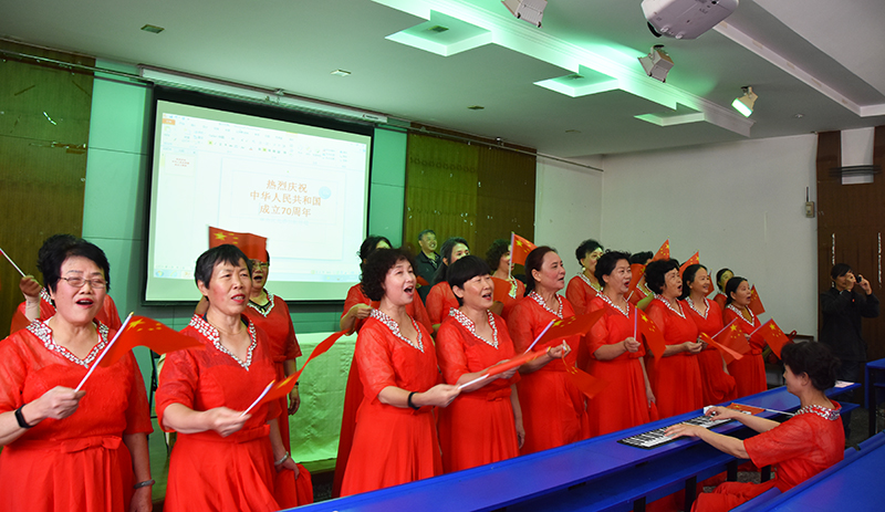 为庆祝新中国成立70周年,弘扬爱国主义精神,激发教职工们的爱国情怀,离退休教职工党委组织了“我和我的祖国”快闪活动。