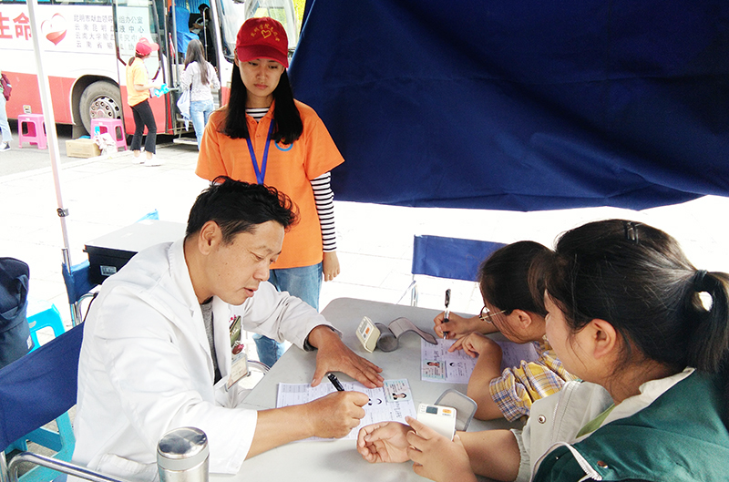 为弘扬无私奉献、救死扶伤的精神,提高当代大学生的社会责任感和积极参与公益事业的热情。best365青年志愿者联合会于10月27日在聂耳广场开展以“传递爱的温暖,点燃生命之光”为主题的无偿献血活动。参加本次活动的师生以及社会爱心人士共计429人,献血量达137060ml。