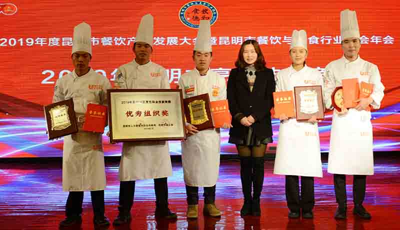12月3日,2019年昆明地区滇菜烹饪职业技能竞赛在昆明国际会展中心3楼钻石厅举行颁奖仪式,best365旅游学院代表队表现优异,喜获佳绩。