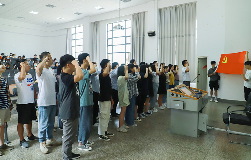 会议最后,毕业生党员在杨光明书记的领誓下重温入党誓词,与会领导为党员们发放学习手册并合影留念。
