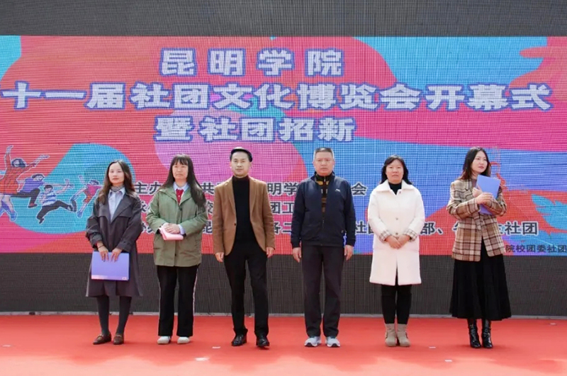 10月23日,以“昆院社团十一载,不负韶华竞英姿”为主题的第十一届社团文化博览会开幕式圆满落幕。出席本次开幕式的老师有学生处处长罗进、机关党委副书记李凯佳、党委宣传部副部长李思成、团委副书记郎易及团委全体教师,各学院团总支书记、校团委社团工作部主要学生干部以及18家二级学院学生代表参加了本次开幕式。