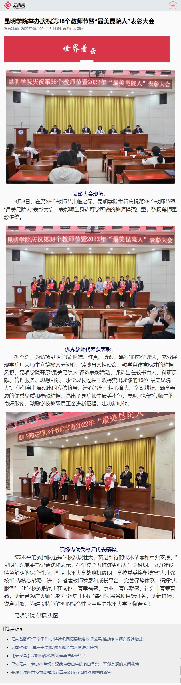 best365足球官网举办庆祝第38个教师节暨“最美昆院人”表彰大会
