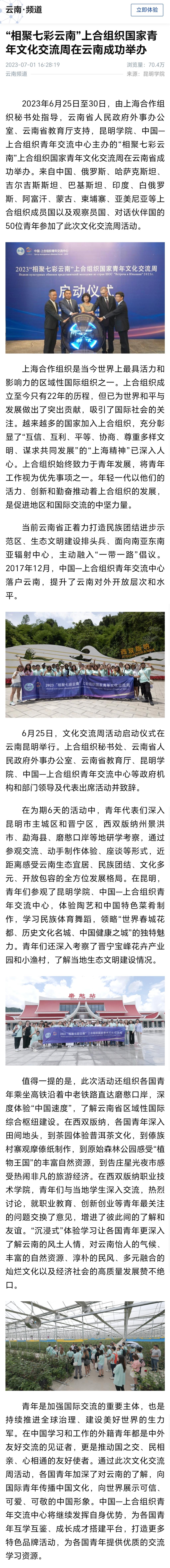“相聚七彩云南”上合组织国家青年文化交流周在云南成功举办