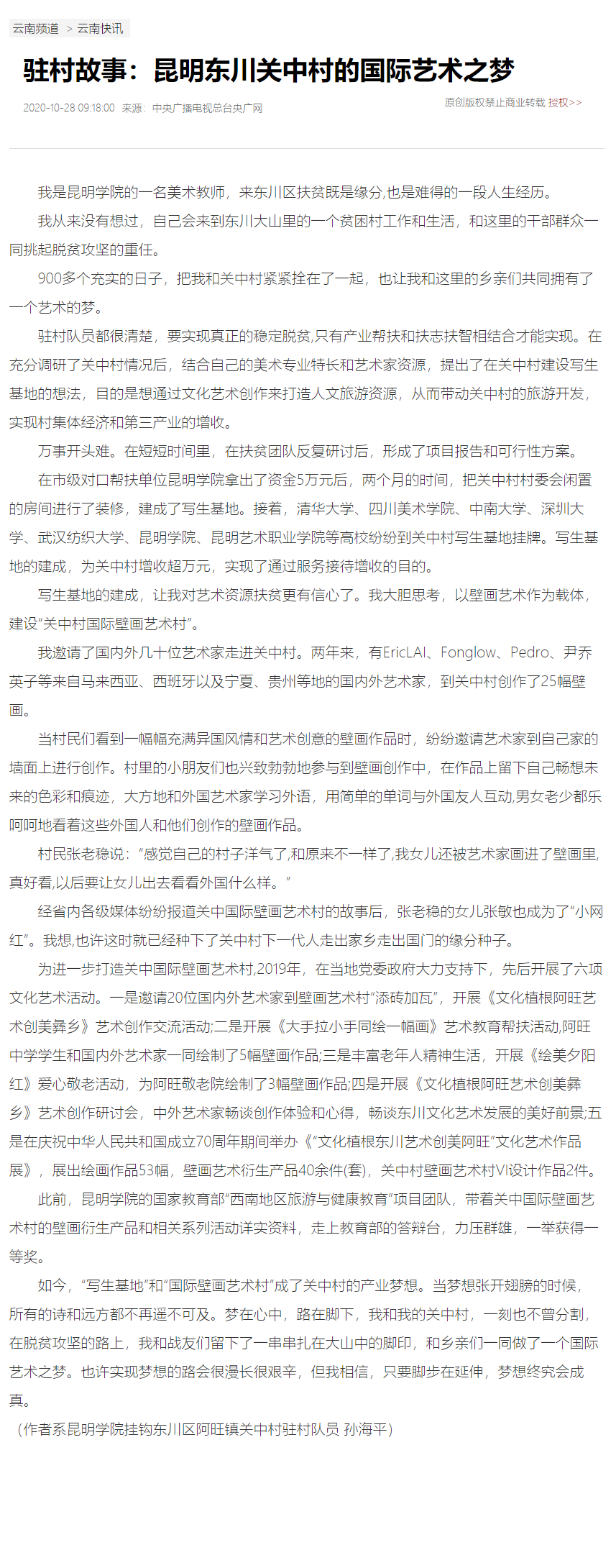 驻村故事:昆明东川关中村的国际艺术之梦