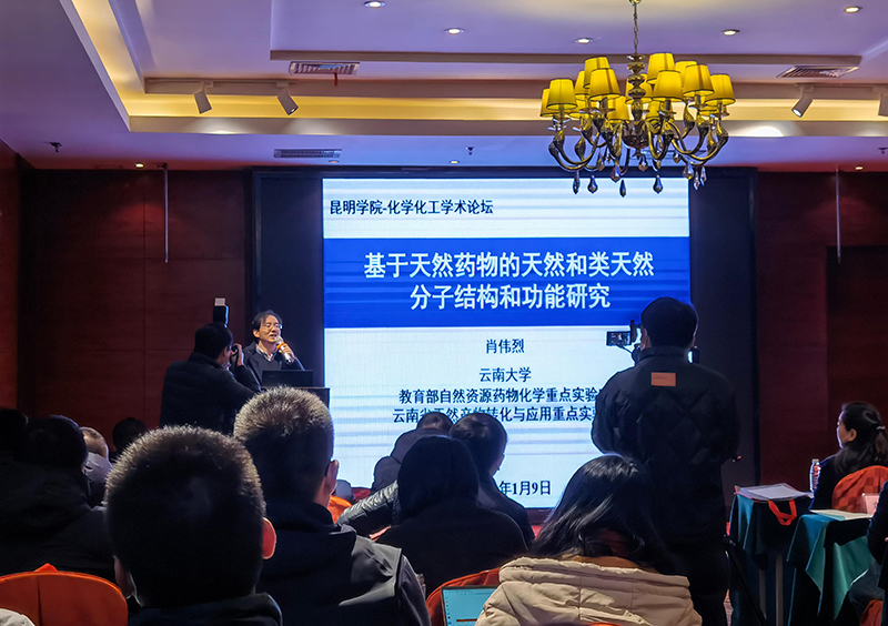 论坛分为上午邀请报告和下午学院学术团队报告两个阶段。上午,云南大学肖伟烈教授、云南民族大学谷利军教授、昆明理工大学陈庆华教授、云南大学袁申富副教授、玉溪市旭日塑料责任有限公司王明显总经理5位特邀嘉宾分别作了专题报告,报告内容涉及天然药物、自由基化学、煤-生物质热解气化、可降解塑料、现代农膜需求。随后参会学者展开了热烈的交流与讨论。