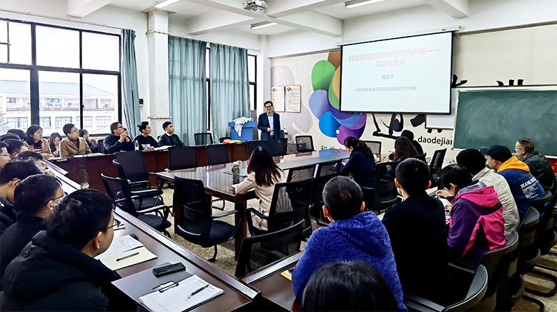 11月9日,在best365足球官网惟真楼3409会议室,中科院南海海洋研究所/山东大学药学院鞠建华特聘教授为化学化工学院师生作了题为《微生物抗感染药物的研究开发——现状与未来》的学术报告,并对国家自然科学基金申报做了针对性的辅导,与会教师交流心得。交流会由化学化工学院院长王宝玲教授主持。