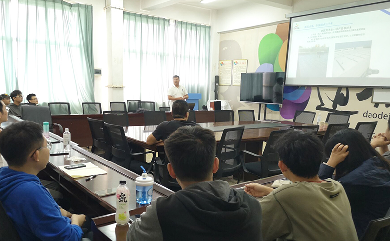 荀开昺工程师结合多年实际工作经验,对防水材料的分类、材料研发,材料组分的配方设计和功能,材料性能测试评价和施工工艺等内容作了深入细致的讲解,鼓励同学们在专业硕士的研究方向上加强基础研究,联系实际应用,对产业界和工程领域的共性痛点问题进行深入剖析,找到解决方案,努力成为一名为社会经济发展作出实际贡献的专业技术人才。