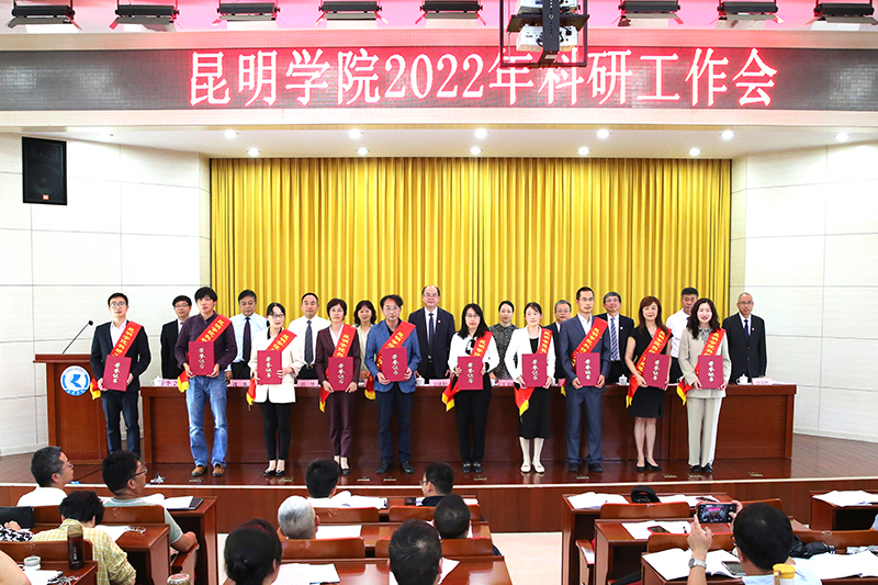 金幼和充分肯定了学校科研工作取得的成绩,对受到表彰的科研工作先进集体和个人表示祝贺,对学校全体科研工作者、科研管理人员的辛勤付出和不懈努力表示感谢。他指出,近年来,学校党委坚持把科研工作作为办学治校的重要工作来抓,在各职能部门、各二级学院和广大教师共同努力下,学校科研工作取得显著成效,2021年荣获云南省科技进步一等奖1项、三等奖3项,实现了历史性突破,为推动学校各项事业高质量发展做出了重要贡献。