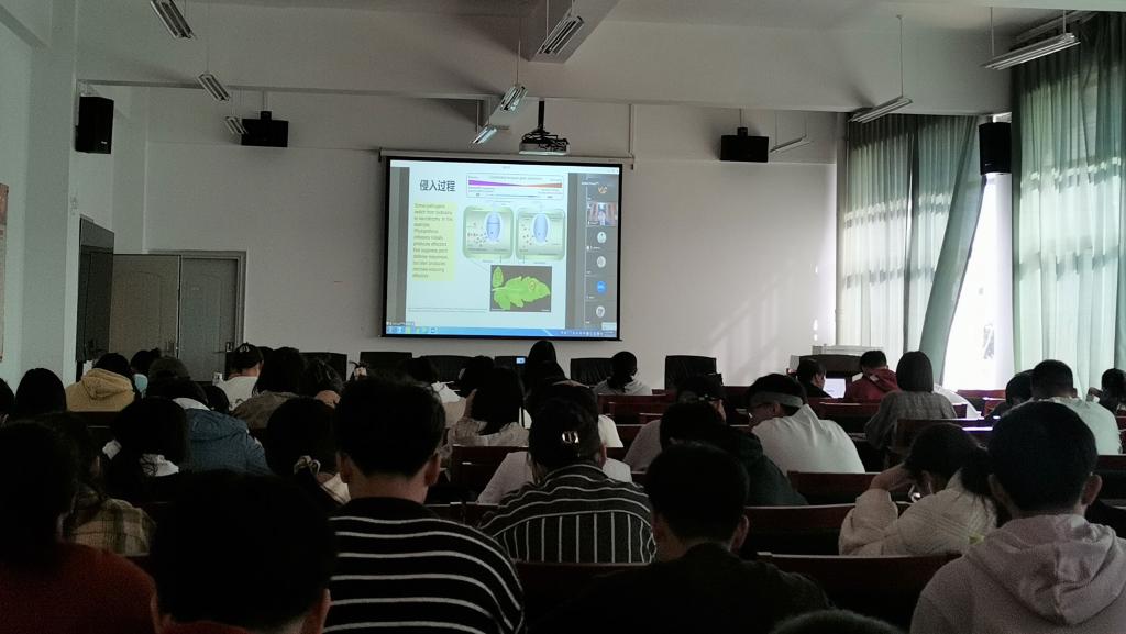 张海峰老师从现代植保面临的挑战与应对对策、病原菌对植物的致病机制以及病害侵袭时植物体的胞内、胞外免疫等多个方面为学生介绍了现代农业中植物病害防控在资源利用与植物保护领域的研究潜力。张老师针对每个部分的内容进行系统地讲解,整个讲座思路清晰,内容丰富。讲座的开展使研究生对植物病原菌入侵的过程以及病害的防控有了更深层次的认知,拓宽了研究生后续研究的思维方式。