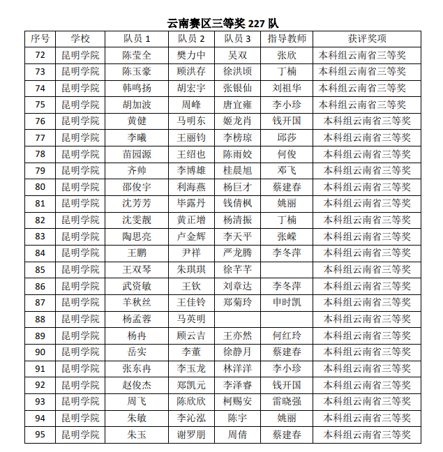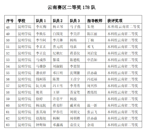 近日,云南省大学生数学建模竞赛组委会发文公布了“2022高教社杯全国大学生数学建模竞赛”获奖名单,best365参赛的129支队伍中有50支队伍获奖,其中,信息工程学院杨文博、汤淑艳、胡建金三位同学在邱莎老师指导下获得全国二等奖。