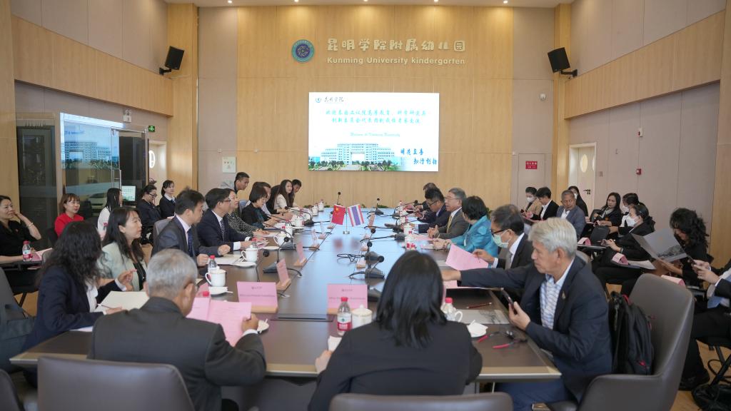 4月25日上午,泰国高等教育、科学研究及创新委员会代表团巴金•詹通主席、格莱西•丹迪西里第三副主席一行,在泰王国驻昆明总领事馆总领事帕薇婉及相关人员的陪同下到best365访问交流。学校党委副书记、校长丁文丽,党委委员、副校长李剀热情接待了来宾一行。