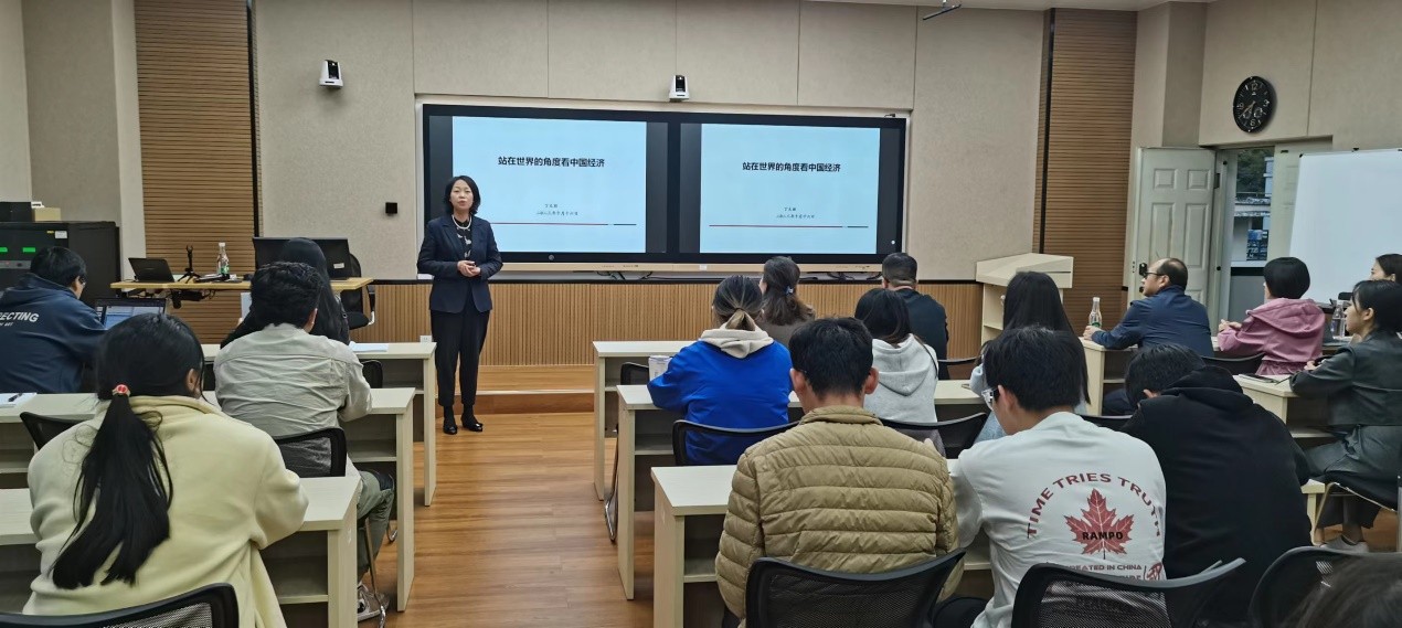 10月16日晚,丁文丽校长到经济管理学院作题为《站在世界的角度看中国经济》的学术讲座。讲座由经济管理学院雷新华院长主持。