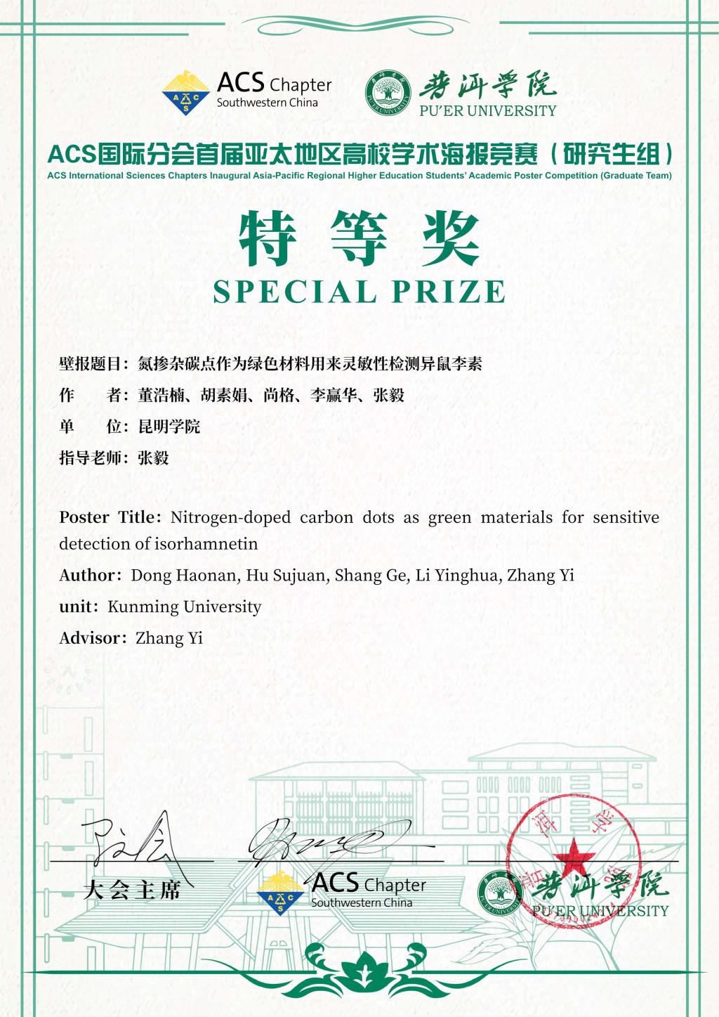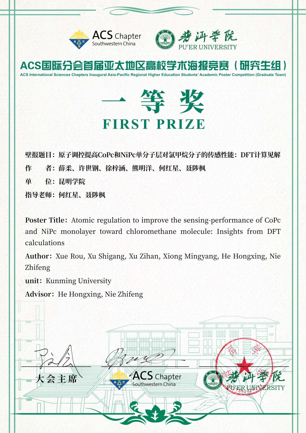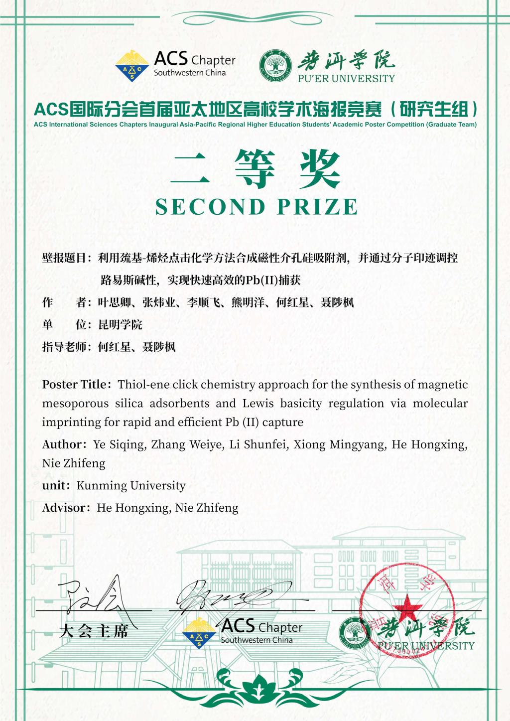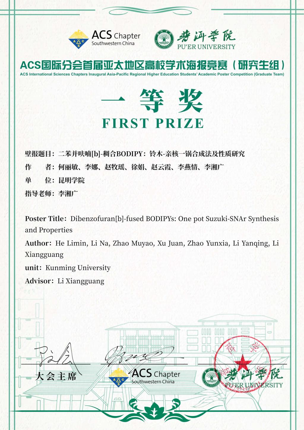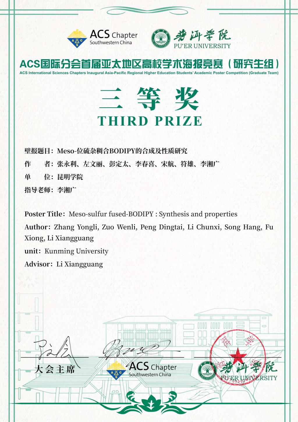 近日,由ACS(美国化学会)中国西南分会、普洱学院联合主办,昆明理工大学、四川轻化工大学共同承办的“2024 ACS国际分会首届亚太地区高校学生学术海报竞赛”在普洱学院举行。