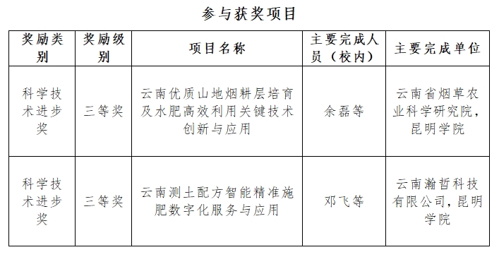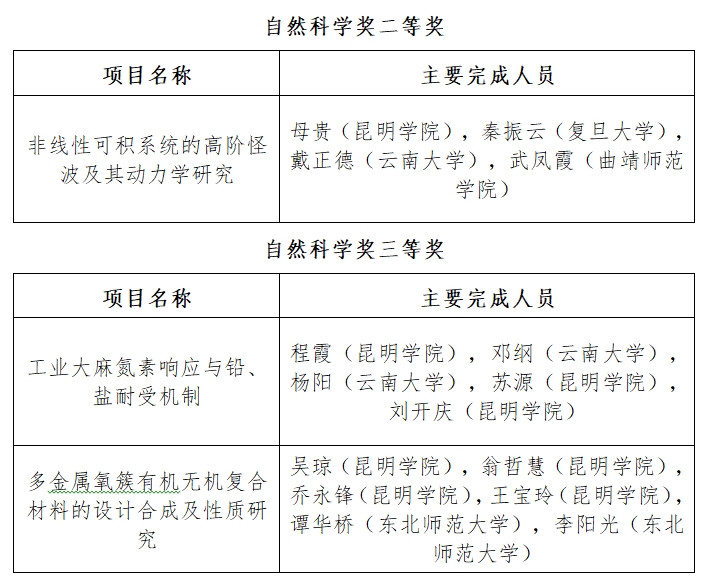 近日,云南省人民政府发布了《云南省人民政府关于2023年度科学技术奖励的决定》,best365足球官网3项成果获2023年度云南省科学技术奖(自然科学奖),其中二等奖1项,三等奖2项。此外参与项目获得科学技术进步奖三等奖2项。