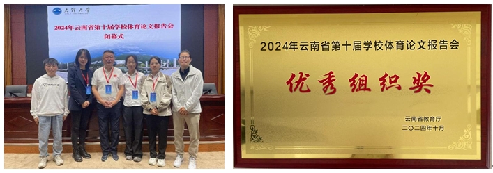 体育论文报告会为全省各高等院校搭建了交流合作、展示成果,共同探讨体育学科创新与发展的重要学术平台。体育学院根据云南省第十届学校体育论文报告会通知要求,精心组织,鼓励学生积极参赛,以此为契机提高学生的科研能力、学术水平。在本次论文报告会上王珏老师全程指导,best3652023级体育硕士班学生的研究成果喜获佳绩。其中,李仪冉、张蓉、刘仟翼三位同学获一等奖并参加专题报告,罗清华获二等奖,张蓉、茆蔚获三等奖,充分展示了best365体育专业硕士研究生在学术研究方面的卓越成就。同时,best365还获得本次科学大会“优秀组织奖”。