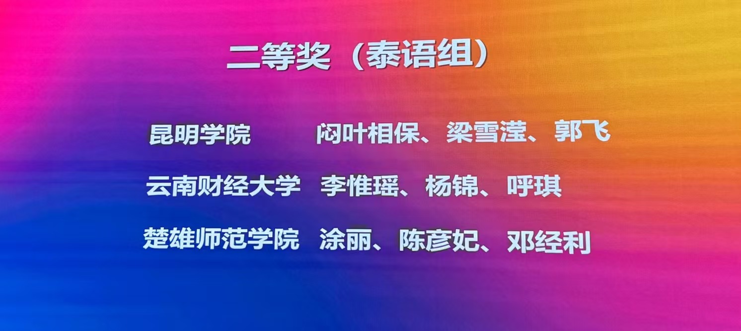 11月16日,外国语学院泰语专业学生代表学校参加第七届“外教社杯”全国高校学生跨文化能力大赛,以总分第五的成绩排名荣获云南赛区二等奖。