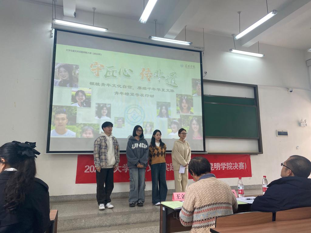 决赛特邀新文科领域内的知名专家担任评委。参赛团队用PPT进行现场展示和答辩,评审专家结合参赛团队的综合展示及答辩情况,对项目提供了实用的建议及指导,助力项目的优化升级。经过4个多小时的激烈角逐,《守匠心,传非遗——“青年瞭望号”数字传播助力云南非遗传承创新》等8个项目拟推入国赛。