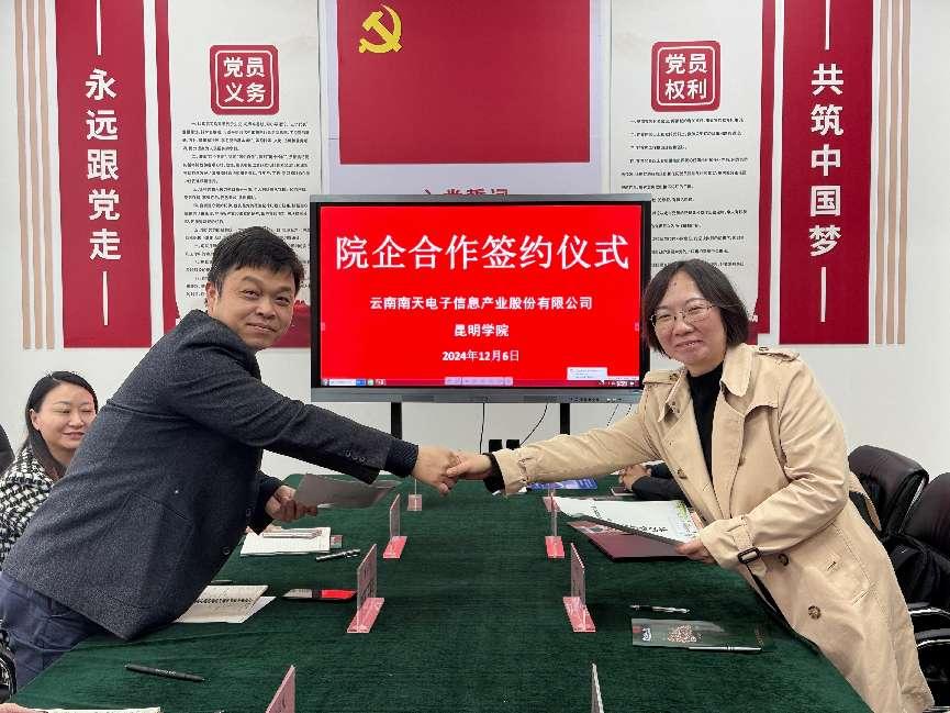 此次合作旨在整合双方优势,打造具有云南特色的数字人才培养合作模式,以满足数字化信息技术行业的人才需求。阳正伟对南天电子的大力支持表示感谢,介绍了人文学院发展概况及数字人文专业建设情况。他强调,作为云南省首个开设数字人文专业的单位,人文学院一直致力于培养具有创新精神、实践能力和数字化素养的复合型人才,此次合作将为师生提供贴近行业的实践平台,助力数字人文学科建设和人才培养迈上新台阶。