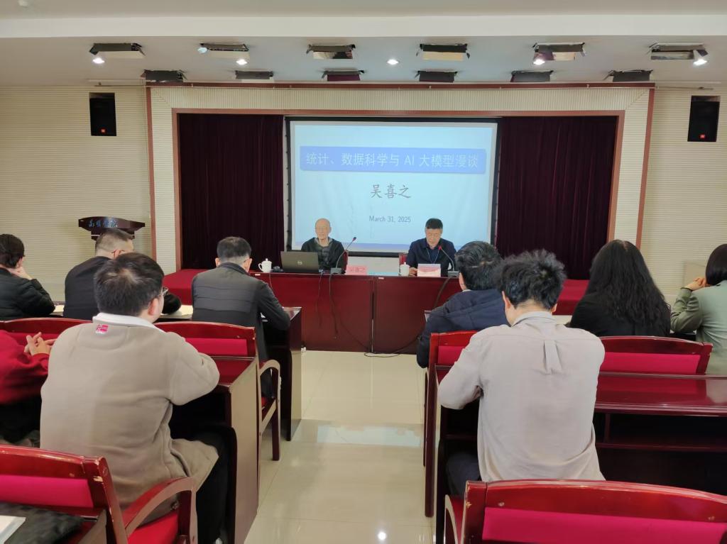 3月31日,学校教务处与数学学院联合举办“数据科学与AI大模型漫谈”专题讲座。讲座由学校党委委员、副校长王凡主持,中国人民大学博士生导师吴喜之应邀主讲,建筑工程学院、农学与生命科学学院以及人文学院等师生代表百余人参加活动。
