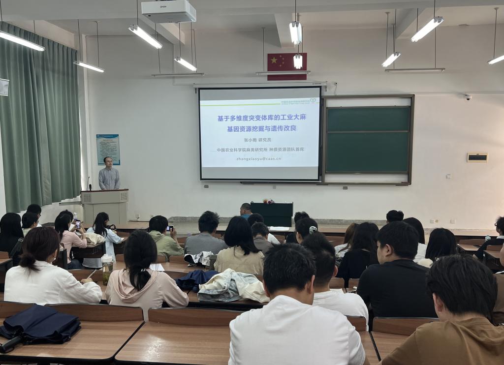 讲座中,张小雨系统介绍了工业大麻的药用价值及其在我国云南、黑龙江等地的合法种植现状,重点阐述了大麻二酚(CBD)在抗抑郁、抗炎等领域的应用潜力。他指出,我国作为全球工业大麻三大主产区之一,亟须通过遗传改良培育高产优质品种,以缩小与国际先进水平的差距。与此同时,他还介绍了其团队在工业大麻基因资源挖掘、分子调控网络构建及遗传改良方面的最新研究成果,为提升工业大麻花叶及籽粒产量提供了理论支撑,也为培育高产优质大麻品种指明了方向。